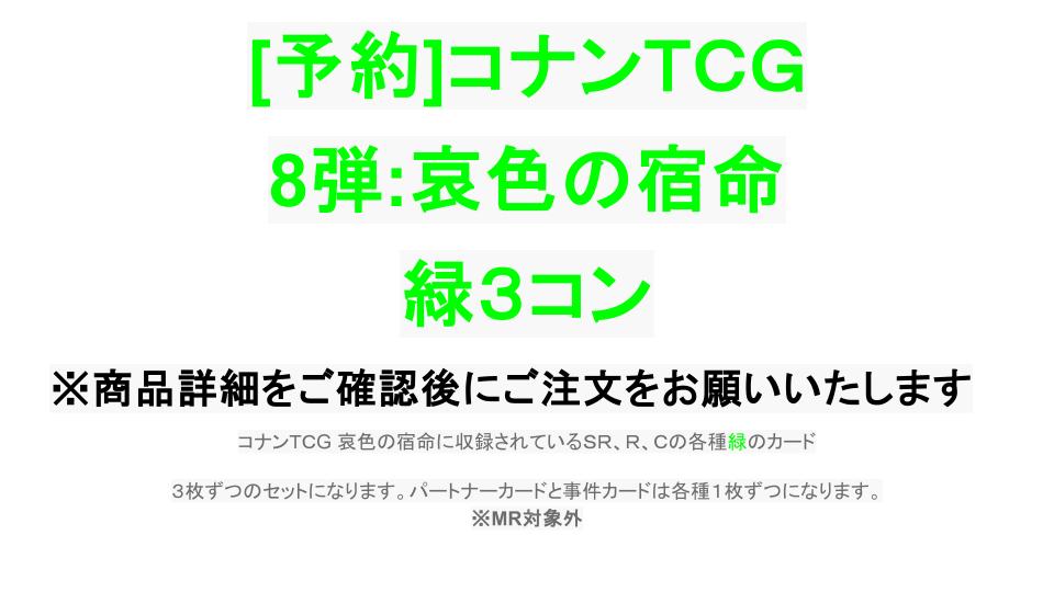 2026年2月21日(土)発売の名探偵コナンTCG Case-Booster 08 哀色の宿命 のSR・R・Cの各種緑のカード3枚ずつのセットです。